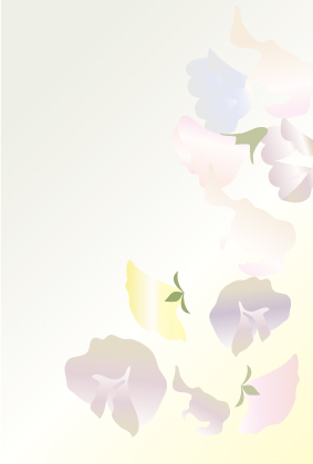 桔梗や秋桜、紫陽花、すずらん、スミレ、スイートピーなどの花をメインに描いた喪中はがきのイラストになっています。